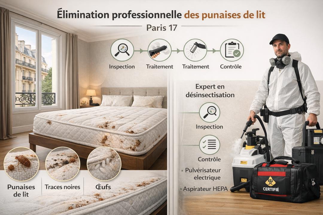 Punaises de lit Paris 17 : traitement professionnel, protocole certifié et gestion locative dans le 17ème arrondissement